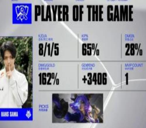 体育资讯10月16日称 在刚刚结束的S15世界赛瑞士轮G2对战KOI的比赛中,Hans sama打出8/1/5的战绩,拿下本次比赛的MVP,这是他的第一个MVP。
